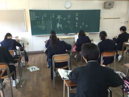 一年生の毛筆授業の締めくくりは「平和」。