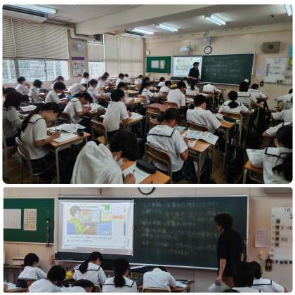 情報モラルについて学習しています。IDやパスワードを厳重に守ることの大切さ、いわゆる「乗っ取り」の怖さについて学びました。