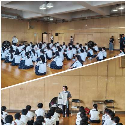 2年生の学年集会で新聞記事を紹介しながら、平和についてお話があり、およそ80年間平和な日本が今後も平和を保つにはどうするべきか考えました。
