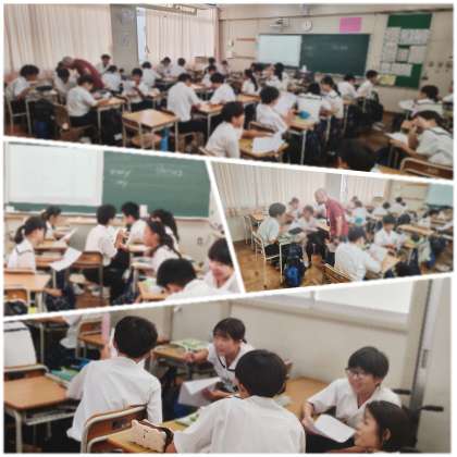 ネイティブスピーカーの先生と「How many 〜」の表現を使ってビンゴをしています。