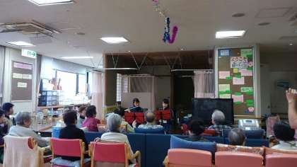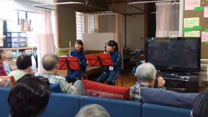 職場体験の最後に、吹奏楽部の2人が、利用者さんにクリスマスミニコンサートをしました。