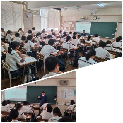 「小さな工場の大きな仕事」を題材に、仕事の意義について考えました。授業を担当した先生が前職の経験から学んだこと、そして今教員という仕事をしていることについてお話があると、生徒たちは熱心に耳を傾けていました。