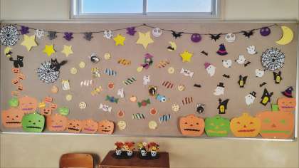 2年生は舞台発表の演劇の練習や小道具製作に余念がありません。校内も季節に合わせてあたらしくデコレーションされています。