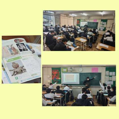 奈良時代の天平文化について学習しています。当時の政治の勢力争いは生き残れるかどうか命がけだったという、先生のお話を生徒たちは興味深く聞いています。
