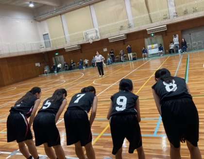 11月16日(土) 我孫子中学校体育館にて、3Bバスケットボールトーナメント1回戦に臨みました。西中学校の女子バスケットボール部は人数が少ないため、大正西中学校と合同チームで出場しました。