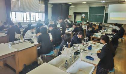 2年生の理科では、電流の生み出す熱量を測るため、汲み置きの水に電流を流して水が温まることを通じて直接温度計をかざして測れない熱量を測る実験をしています。