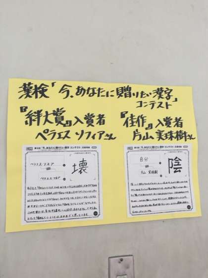 応募の前に、学年でも作品を選定したところ、「壊」と「陰」という漢字が選ばれました。