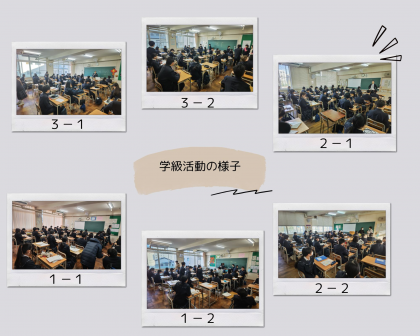 各クラスの学級活動では、久々にそろった仲間で話に花が咲いていたり、冬休み中の課題を集めたり、明日のテストへ向けての準備をしたり、とあっという間に時間が過ぎました。