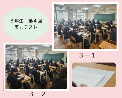 1,2年生がチャレンジテストに取り組む一方、3年生は、本日、明日の2日間で最後の校内実力テストに臨んでいます。