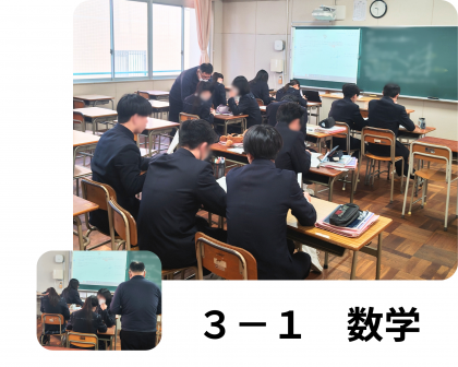 数学では、分度器などを使わずに、三角形の三辺を見て直角三角形かどうかを判断するにはどうしたらいいか、三平方の定理を思い出しながら取り組んでいます。