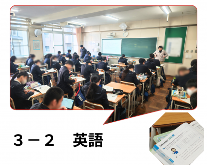 英語は、「もしもドラえもんの〇〇があったら…」というテーマで、「タイムマシーン」や「どこでもドア」などを想定して、それぞれの意見を書き出しています。今後、お互いの意見を交換し、発表する予定です。