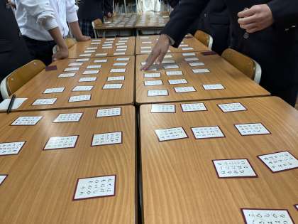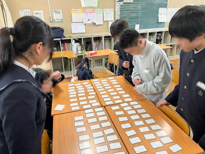 百人一首大会に向けた練習を学年で取り組んでいます。