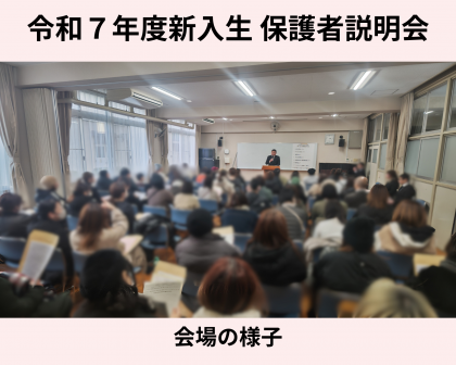 本日午後、多目的室にて令和7年度入学者の保護者説明会を実施しました。