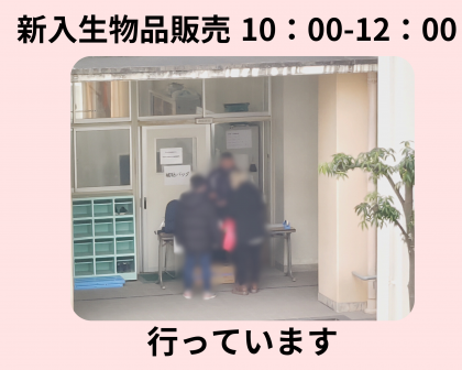 令和7年度新入生へ向けての物品販売を本日10時〜12時(受付は11時30分まで)、本校武道場をはじめ、1階フロアにて行います。ご購入の際には現金が必要となりますので、ご注意ください。