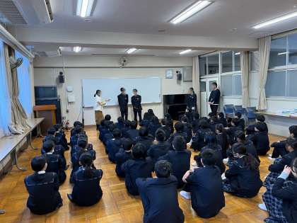 本日の学年集会では、合唱コンクールの歌う順番決めとクラスや学年で力を合わせて頑張って行こうという話がありました。
