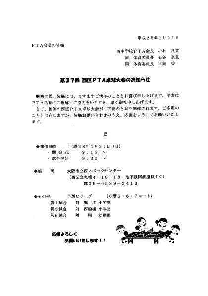 1月31日に、第37回西区PTA卓球大会が行われます。