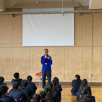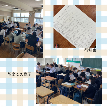 朝の学年集会では先生からの3年生の目標「躍進〜高めあい、支えあい、認め合い」のお話がありました。そのあと、修学旅行執行部から修学旅行のスローガンが発表されました。みんなで楽しめる旅行になるよう、しっかりと話し合い、協力しましょう。