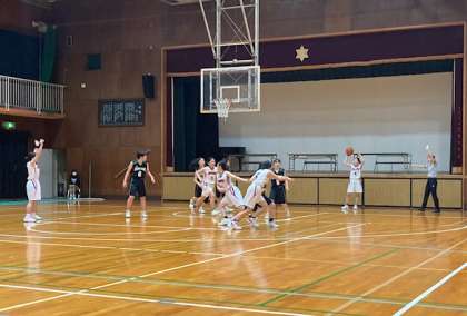 対戦相手の新豊崎中学校の厳しいディフェンスに、自分たちのプレイができない時間が長く続きました。それでも、最終ピリオドまで目標を持って戦い抜くことができました。