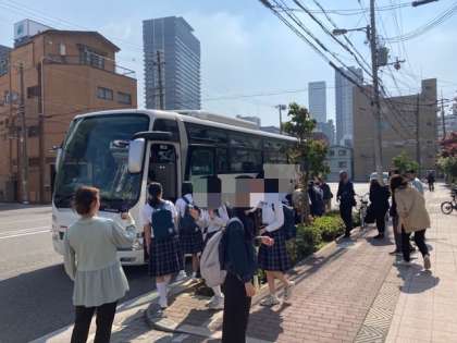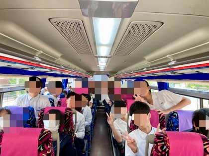 出発式を行ったあと、バスに乗って出発しました。たくさんのかたにお見送りいただき、ありがとうございました。