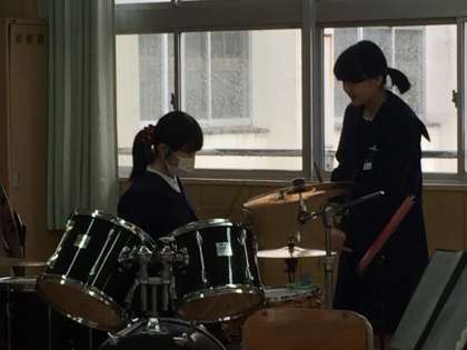 吹奏楽部では、合奏を聴いた後、それぞれの楽器体験を行いました。