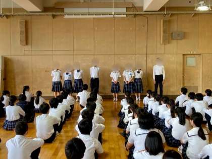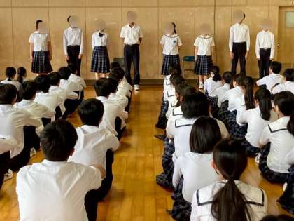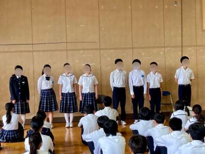 修学旅行を終えた今日、1時間目は健康観察を行いました。レクリエーションや執行部を担当した生徒たちも思いを語りました。