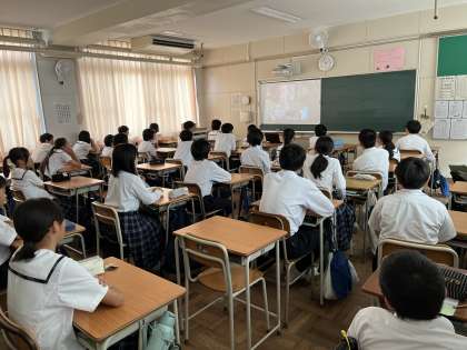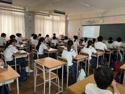 本日の平和学習では戦争についての話を映像を使って学びました。