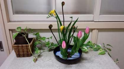 校長室の入り口に、華道部の先生が、美しい花を生けてくださいました。