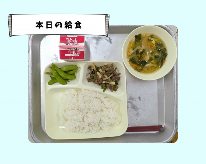 本日のメニューは、ごはん 牛乳 チンジャオニューロウスー 中華みそスープ えだまめ でした。