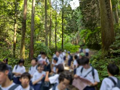 オリエンテイリングを終え、続々と生徒たちが山道を下ってきます。