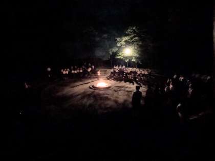 楽しかった時間は、なんと早く過ぎるものか…キャンプファイヤーも終わりが近づき、静かに燃える火を静かに心穏やかに見つめています。