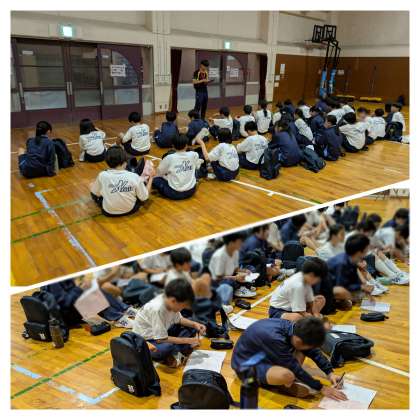 補食の後はクラス毎にクラスミーティングを行い、今日の1日の振り返りをしています。