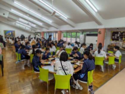 朝の集いから空腹を訴えていた生徒たち、あっという間にお味噌汁もご飯も完食です。