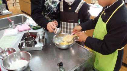 1年生が家庭科の授業でカップケーキを作っていました。