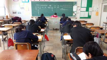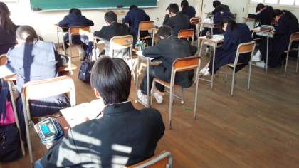 2月1日(月)に実施した「英語能力判定テスト」に、インフルエンザ等で欠席した生徒のため、本日、放課後、再度、実施しました。