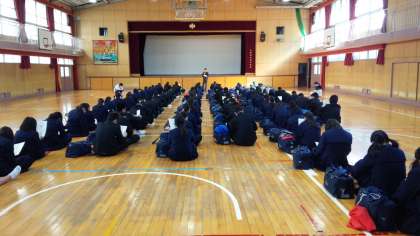 体育館では、私学入試前日指導が行われました。