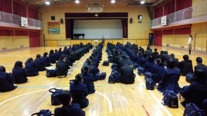 そのあと、気持ちを切り替えて、明日の「公立高校一般入学者選抜」出願注意が行われました。