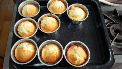 今日の雛祭りメニューの給食、カップケーキということで、みんな大喜びです。
