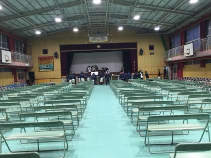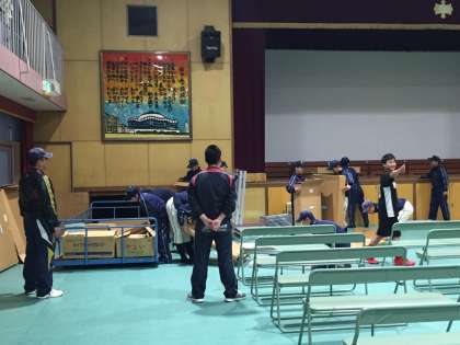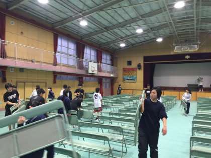 今日は、休日練習後にバスケ部と野球部が体育館で卒業式の会場準備をしてくれています。