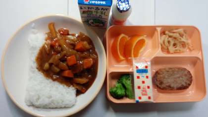 今日の給食はハンバーグカレーでした。