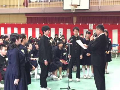卒業式終了後、3年生が体育館で最後の学級活動を行いました。