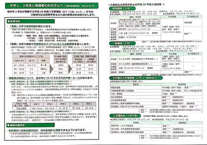 大阪府教育委員会より、平成29年度入学者選抜に関する変更点の説明プリントが届いています。