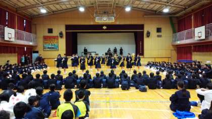 6限目、体育館において、部活動紹介が行われました。