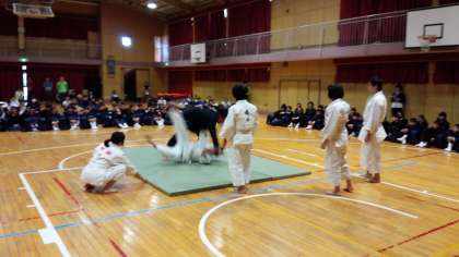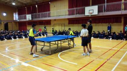 運動部には、野球部、女子バレーボール部、男子バスケットボール部、女子バスケットボール部、柔道部、サッカー部、卓球部、陸上部があります。