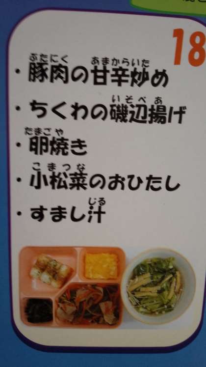 豚肉の甘辛炒め、ちくわの磯辺揚げ等、とても美味しかったです。