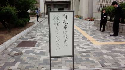 近隣のご迷惑になりますので、自転車は校内の駐輪場所にとめてください。