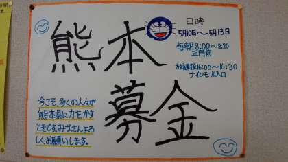 校内の掲示板に貼っている募金活動の周知ポスターです。