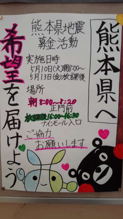 放課後のナインモールでの募金活動の際に持参しますのでご覧ください。