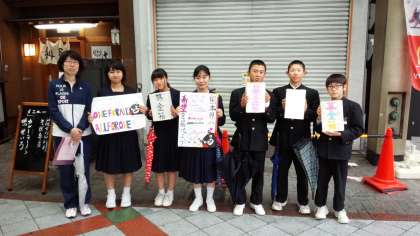 ナインモールの商店街のご協力により、生徒は安心して募金活動ができました。ありがとうございました。週末金曜日まで行います。ご協力よろしくお願いします。