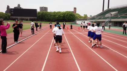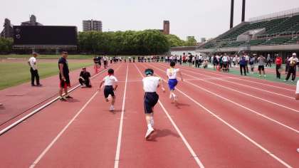 全天候型フィールドでの50m走です。学校の運動場と違って専用の競技場なので、フィールドに足がフィットし、好記録が期待できそうですね。