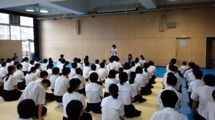 今日も、朝早くから、3年生の生活委員の生徒たちが、「学年集会です、急いでください!」と呼びかけをしてくれています。